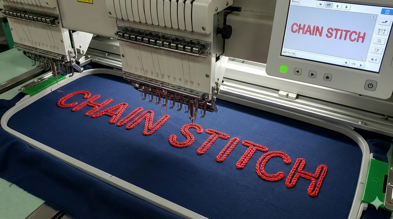 Elevate your designs with the classic, looped texture of the chain stitch. Known for its hand-crafted appearance, this technique adds a unique "rope-like" depth that standard satin stitches simply can’t match. It’s the perfect choice for vintage-inspired logos, delicate cursive scripts, and intricate floral patterns. we are specialist for 3d with chain stitch